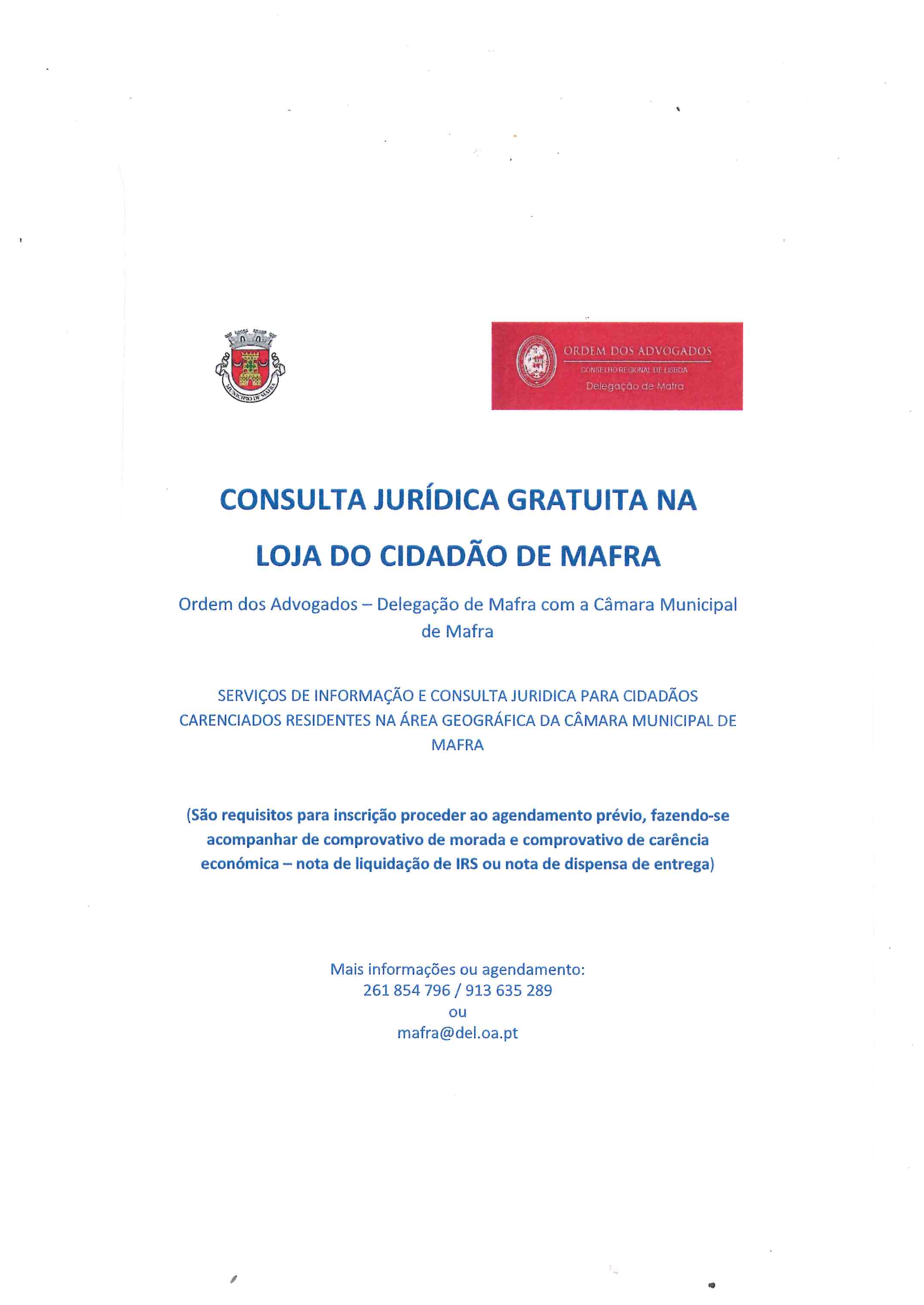 CONSULTA JURÍICA GRATUITA NA LOJA DO CIDADÃO DE MAFRA